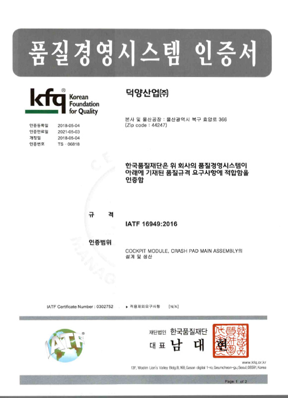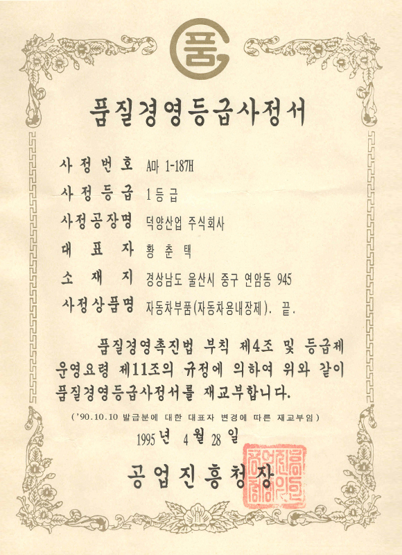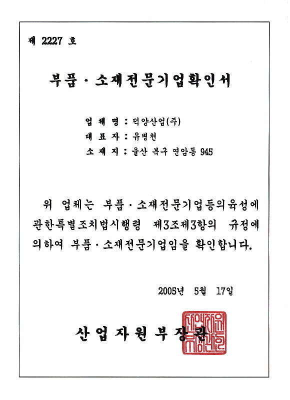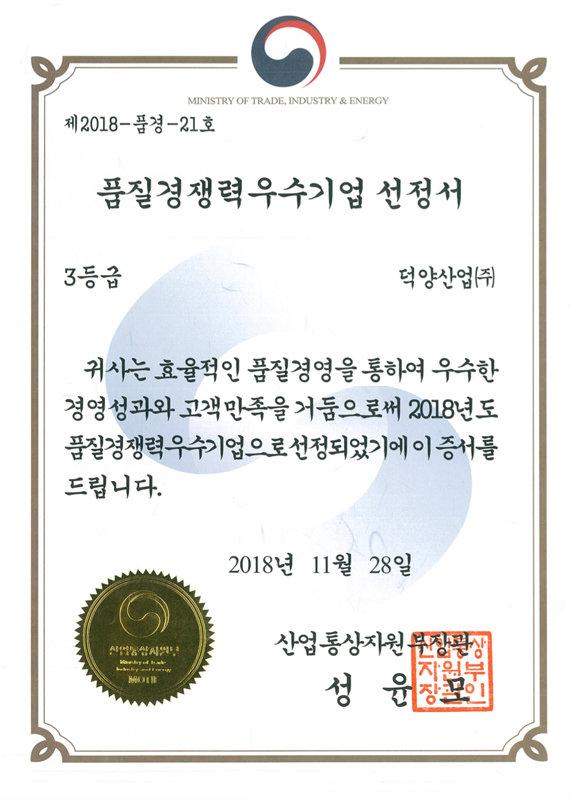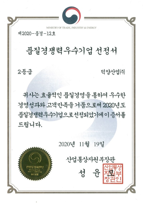 덕양산업의 뛰어난 경쟁력